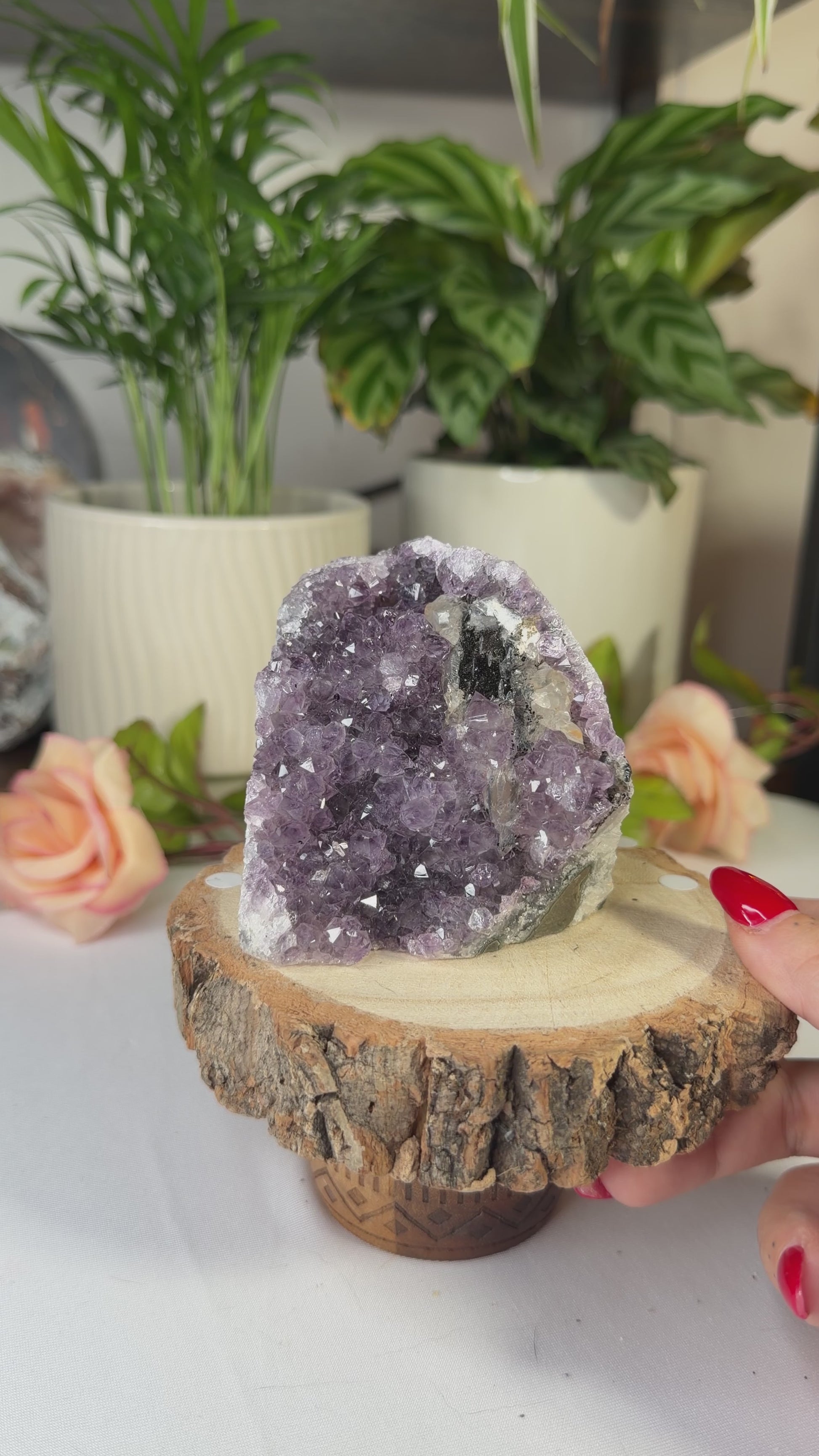 "I embrace the soothing energy of amethyst, inviting peace and harmony into my life. I release all tension and negativity, opening my heart to love and spiritual growth. I trust in my path and the wisdom that guides me."
