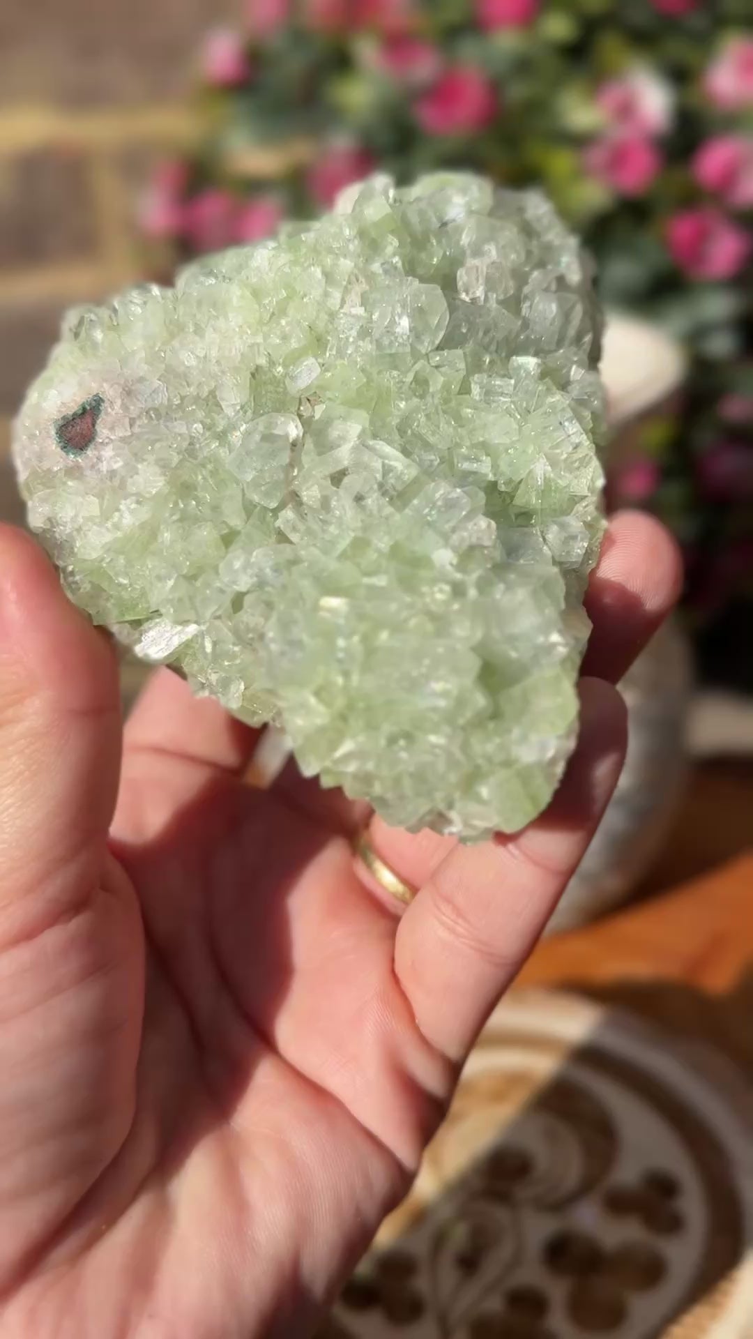 Green Apophyllite is a beautiful variety of apophyllite that is known for its vibrant green color, which is a result of natural mineral inclusions, often related to iron or copper. Like other types of apophyllite, green apophyllite is valued for its powerful healing properties, particularly its ability to support spiritual growth, emotional healing, and energetic clearing. Here are the key healing properties of Green Apophyllite:
